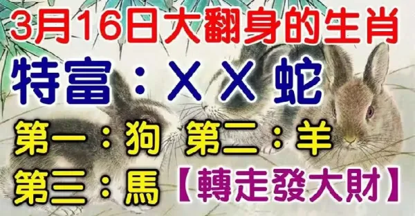 3月16日必然轉運大翻身的生肖,轉走發大財