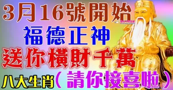 3月16號開始福德正神送你橫財千萬,八大生肖請接喜