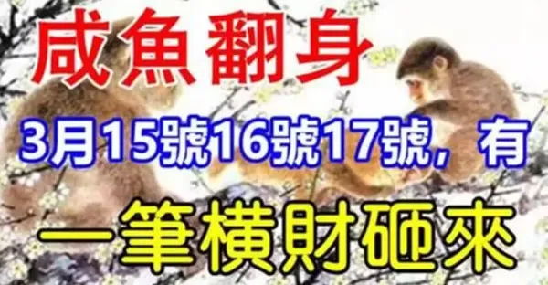 3月15.16.17號鹹魚翻身,有一筆橫財砸來的生肖