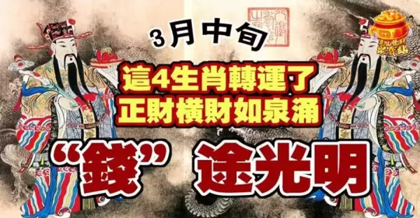 ❤3月中旬這四生肖轉運了,正財橫財如泉湧,錢途光明