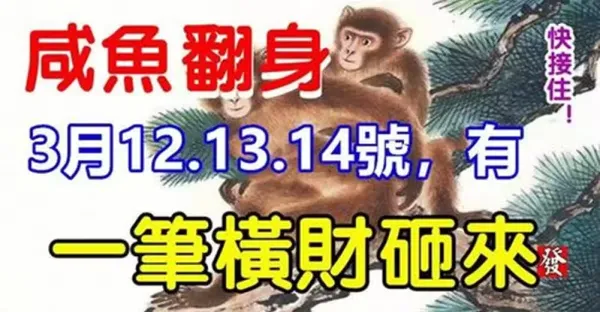 3月12.13.14號鹹魚翻身,有一筆橫財砸來的生肖
