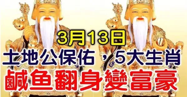 3月13日土地公保佑,大發一筆橫財,鹹魚翻身變成富豪的生肖有你嗎?