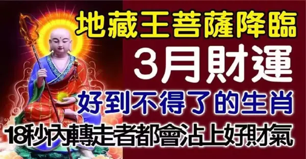 地藏王菩薩降臨,3月財運好到不得了的生肖,轉走會沾上好財氣