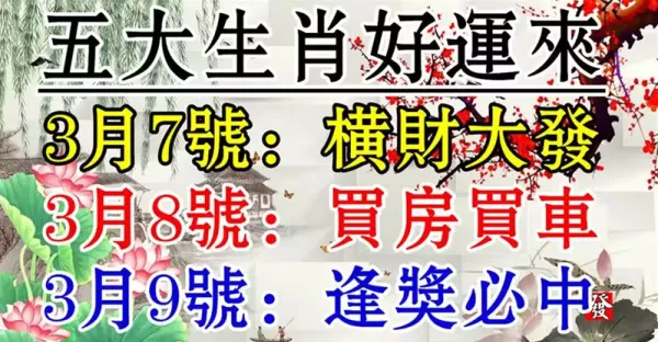 五大生肖好運來:3月7號~3月9號橫財大發,買房買車的生肖
