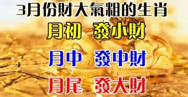 3月份財大氣粗的生肖:月初發小財,月中發中財,月尾發大財