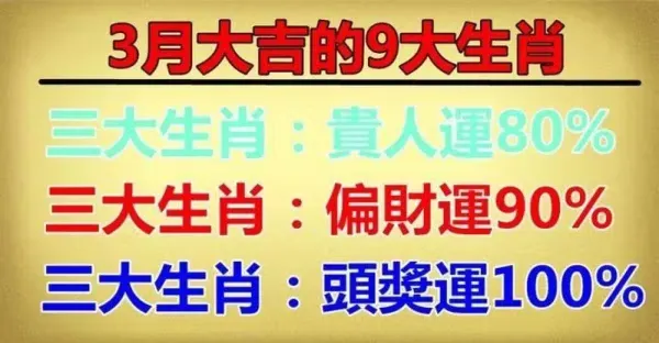 👍3月大吉的九大生肖:貴人運,偏財運,頭獎運