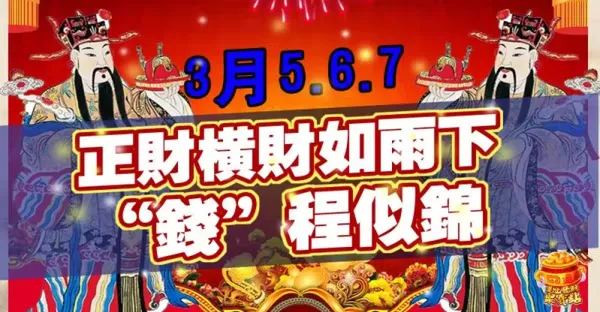 3月5.6.7日正財橫財如雨下(錢)程似錦的生肖