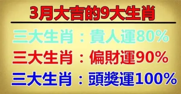 3月大吉的九大生肖:貴人運,偏財運,頭獎運