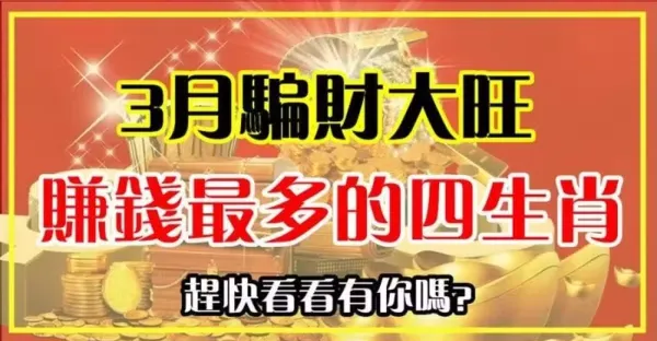 3月偏財大旺,賺錢最多的四生肖