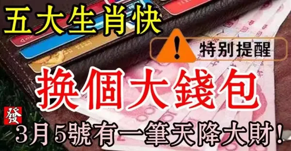 五大生肖快換個大錢包,3月5號有一筆天降大財快來接