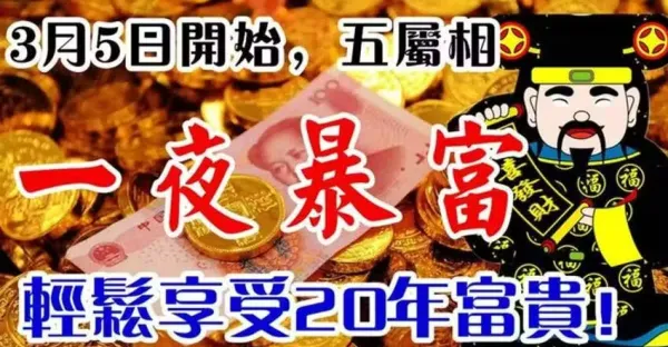 3月5日開始翻身轉運,輕鬆享受20年富貴的五大生肖快來接