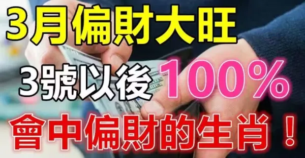 👍3月偏財大旺,3號以後會中偏財的生肖