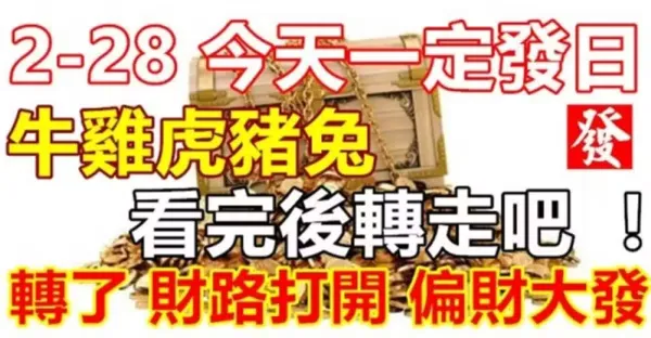 2月28號的今天一定發日(牛雞虎豬兔)看完後轉走吧,轉了財路打開