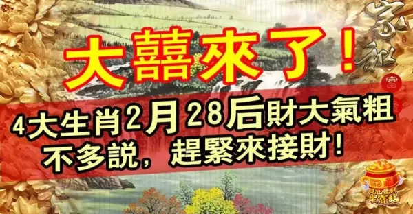 大囍來了,2月28後財大氣粗的生肖,不多說,趕緊來接財
