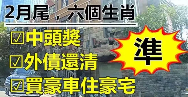 2月尾:六個生肖中頭獎,外債還清,買豪車住豪宅