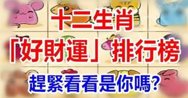 👍十二生肖(好財運)排行榜,趕緊看看是你嗎??