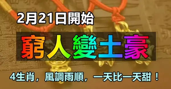 2月21日開始窮人變土豪,四生肖風調雨順,一天比一天甜
