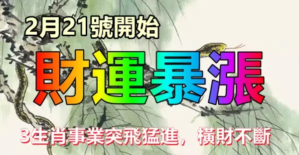2月21號開始運勢如虹,橫財不斷,三生肖事業突飛猛進,財運暴漲