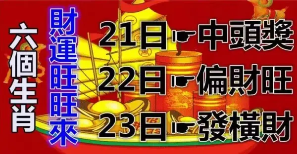 👍六個生肖財運旺旺來:21日中頭獎,22日偏財旺,23日發橫財
