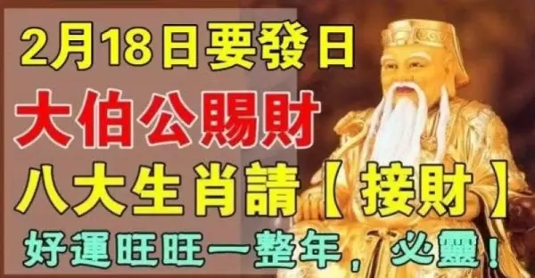 👍2月18日要發日大伯公賜財,八大生肖請接財,好運旺旺一整年.