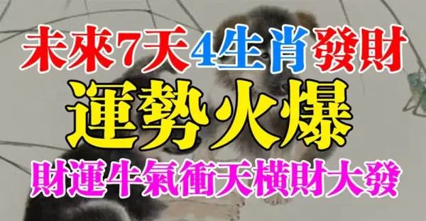 未來七天發財,運勢火爆,財運牛氣沖天,橫財大發的生肖