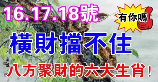 2月16.17.18號橫財擋不住,八方聚財的六大生肖