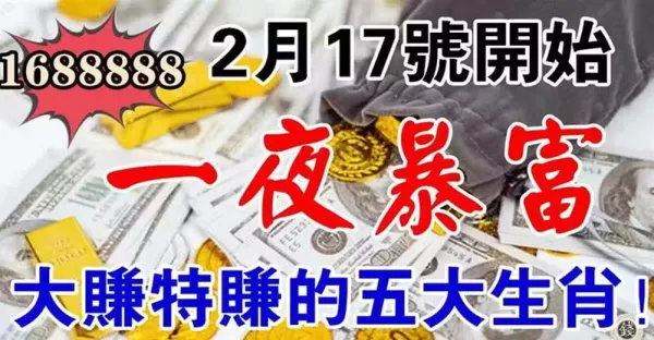 2月17號財運上上籤,偏財橫財不斷的五大生肖