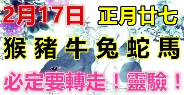 2月17日(猴、豬、牛、兔、蛇、馬)必定要轉走