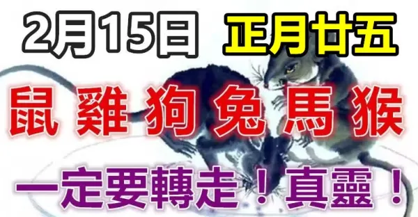 2月15日(鼠、雞、狗、兔、馬、猴)一定要轉走