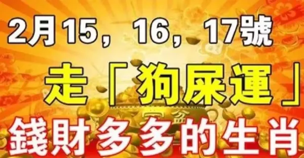 2月15,16,17號走(狗屎運)錢財多多的生肖