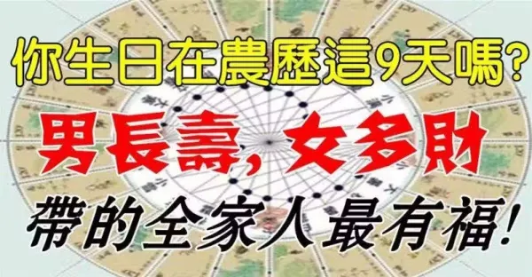 你生日在農曆這9天嗎? 男長壽,女多財,帶得全家人最有福