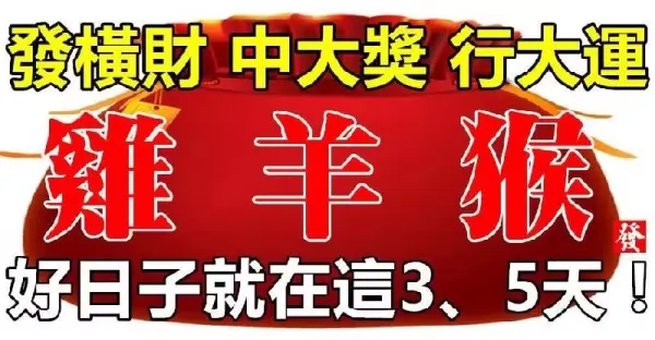 發橫財、中大獎、行大運的生肖,好日子就在這3、5天