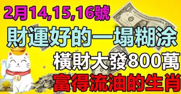 👍2月14,15,16號財運好的一塌糊塗,橫財大發八百萬,富得流油的生肖.