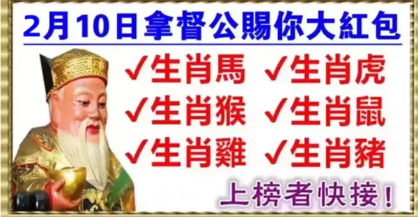 2月10日拿督公賜你大紅包,上榜生肖快接
