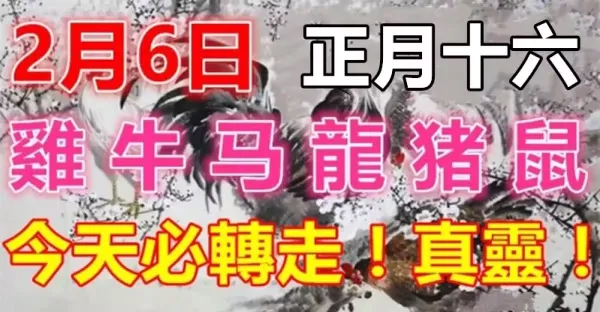 2月6日,正月十六(雞、牛、馬、龍、豬、鼠)今天必轉走