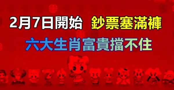 2月7日開始鈔票塞滿褲,六大生肖富貴擋不住