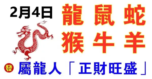 2月4日生肖運勢_龍、鼠、蛇大 吉 !!