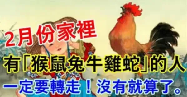 2月份家裡有(猴鼠兔牛雞蛇)的人一定要轉走,沒有就算了