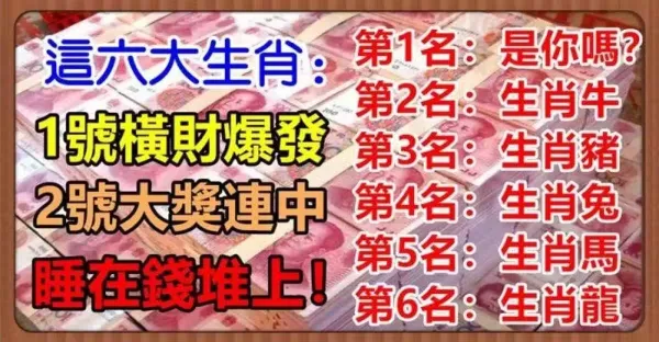 六生肖一生偏財運最旺,上榜者必轉,必有好運行