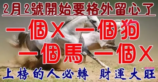 2月2號開始要格外留心了,一個X,一個狗,一個馬,一個X財運大旺