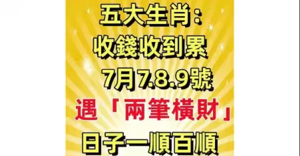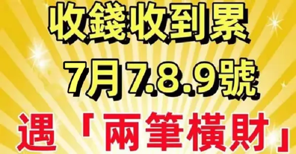 收錢收到累!7月7.8.9號遇「兩筆橫財」日子一順百順的生肖