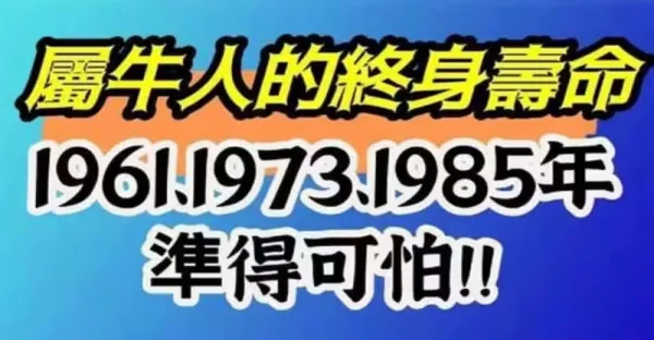 屬牛人的終身的壽命!!! 1961、1973、1985年, 准得可怕