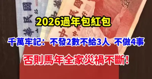 2026過年包紅包,千萬牢記:「不發2數,不給3人,不做4事!」,否則馬年全家災禍不斷