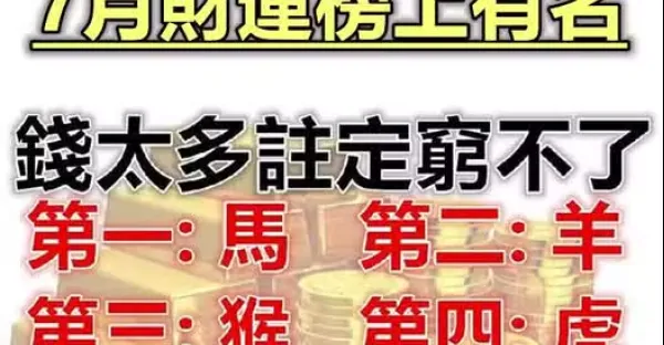 七月將至,TOP5生肖錢財福氣滿滿!錢財滾滾來