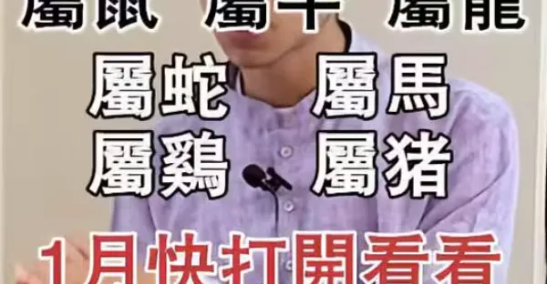 「屬鼠 屬牛 屬龍 屬蛇 屬馬 屬雞 屬豬 」1月一定要開啟看看! 越快越好!