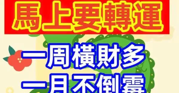 六大生肖馬上要轉運:一周橫財多,一月不倒霉,一年窮轉富!