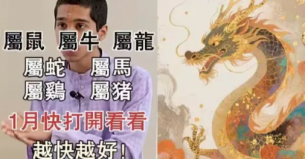 「屬鼠 屬牛 屬龍 屬蛇 屬馬 屬雞 屬豬 」1月一定要開啟看看!越快越好!