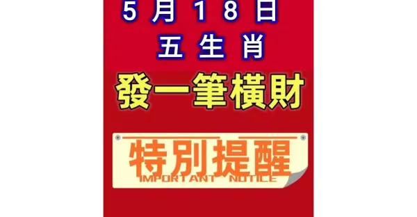 5月18日 五生肖 「財運旺旺來」 發一筆橫財