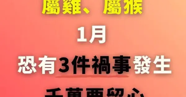 「屬龍、屬鼠、屬雞、屬猴人」1月恐有3件禍事發生,千萬要留心, 老天爺都救不了!