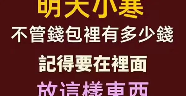 「豬、雞、虎、兔、蛇、馬」明天小寒,不管錢包里有多少錢,記得要在裡面放這樣東西, 第2天就會有橫財!